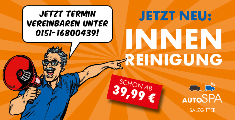 Ab sofort bietet das autoSPA Salzgitter-Lebenstedt eine professionelle Innenreinigung für Fahrzeuge an – gründlich, schonend und schon ab 39,99 €.